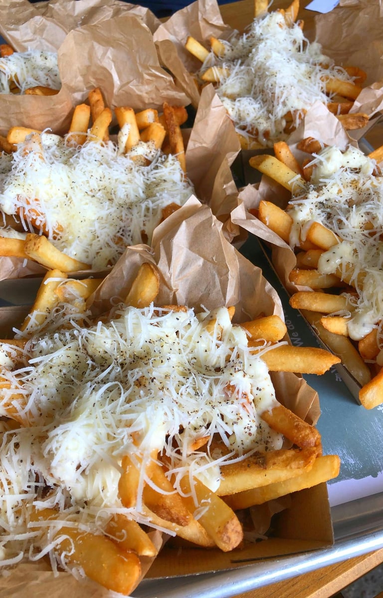 Fries smothered in our signature cheese blend & topped with crispy onion bits